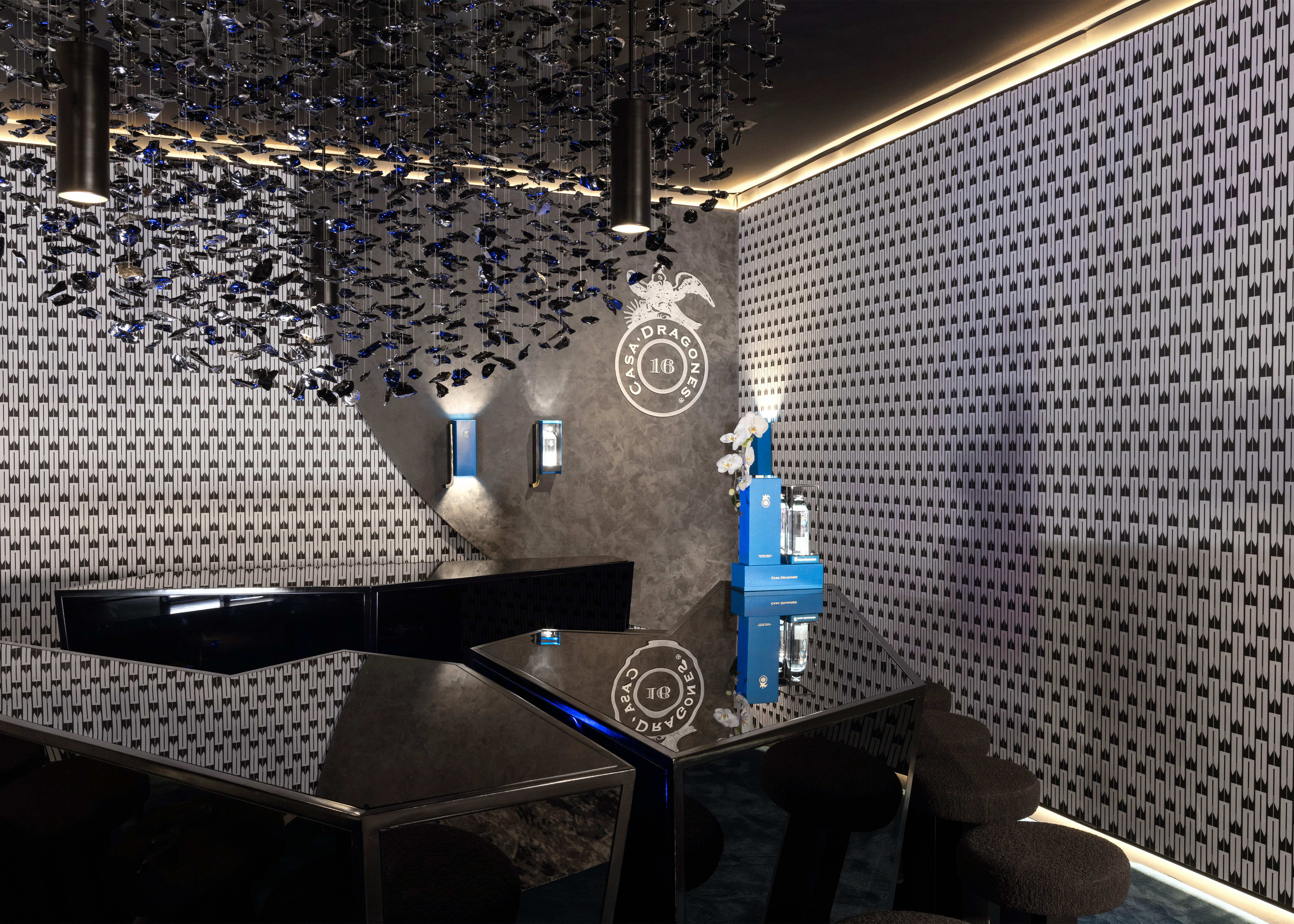 Inspirado en el Tasting Room ubicado en San Miguel de Allende, México, este lounge representa el compromiso que la casa tiene con el oficio artesanal y el diseño mexicanos. Cortina trabajó con el productor de tequila para crear algunos elementos únicos para este espacio, como la obsidiana, material que Gloria domina a la perfección y que se encuentra en los campos de agave de Casa Dragones en Jalisco.