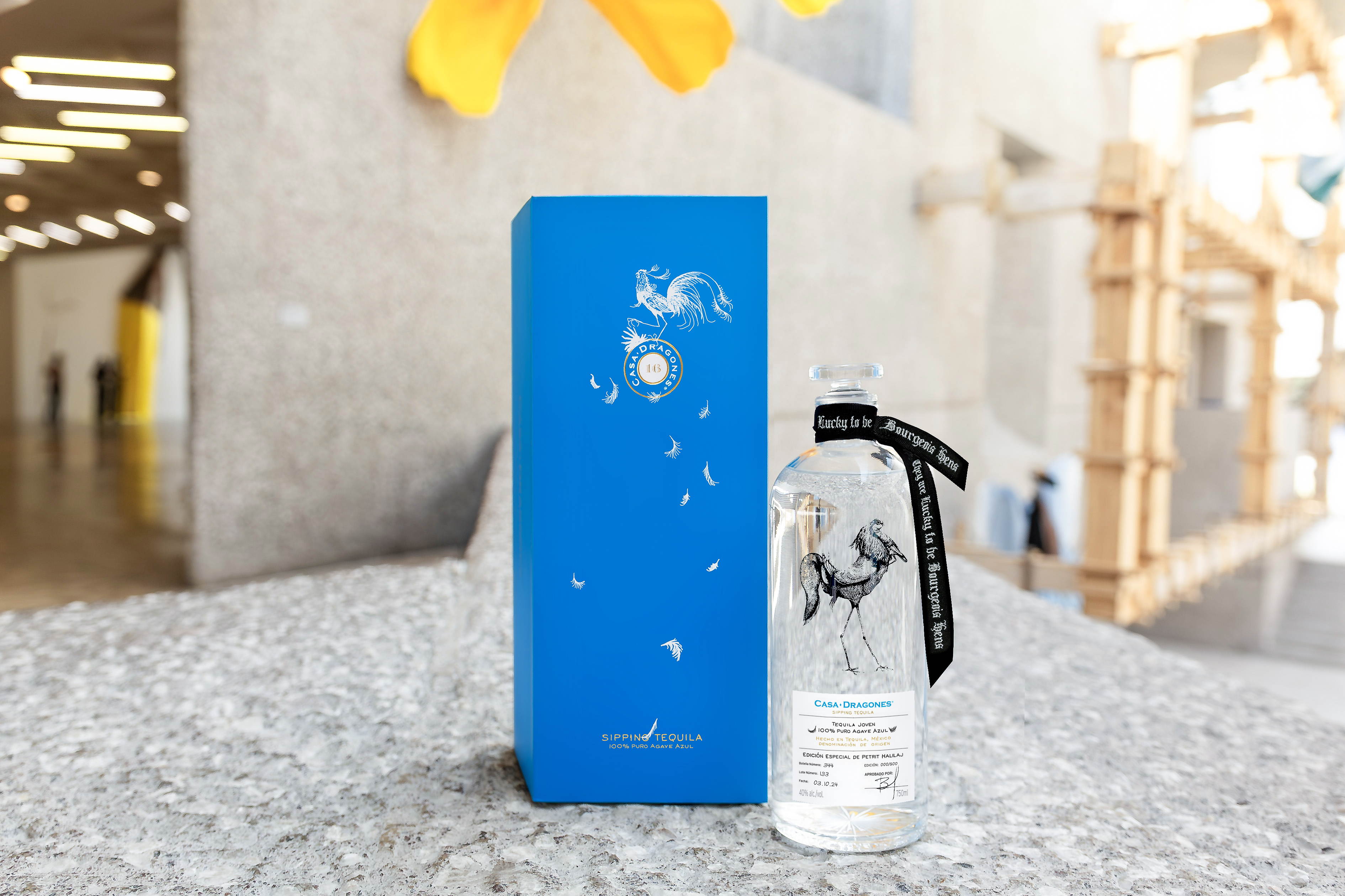 Como un creador contemporáneo de renombre internacional, Halilaj ha obtenido críticas positivas por la provocativa naturaleza de su trabajo. Esta edición especial, que lleva por nombre They Are Lucky to Be Bourgeois Hens, incluye una obra de arte original por parte de Halilaj en el cristal del decantador de Casa Dragones Joven: un tequila 100% puro de agave azul con un maridaje delicado de tequila blanco con tequila extra añejo que ha sido añejado en barricas de roble americano durante cinco años.